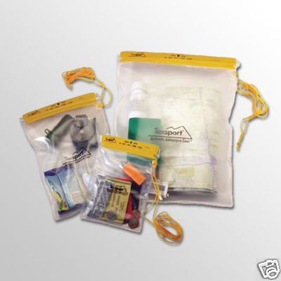 New 3 Piece Waterproof Plastic Pouch. Each one of these heavy duty plastic bags comes with a lanyard for easy carrying. Loop & Hook closing system ensures full ...